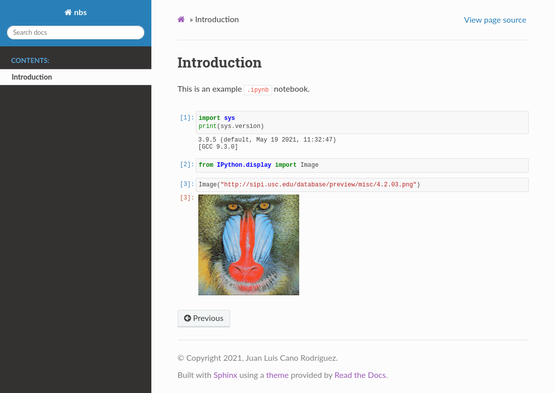 • The visual appearance of code cells and their outputs is slightly different: nbsphinx renders the cell numbers by default, whereas MyST-NB doesn’t.